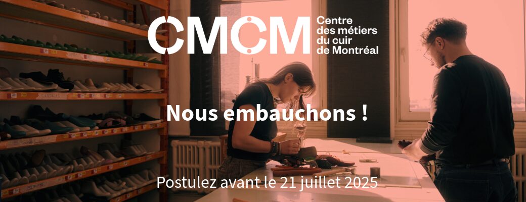 Le Centre des métiers du cuir de Montréal (CMCM) est une institution de renom dédiée à la formation en maroquinerie et en confection de chaussures. En partenariat avec l’Institut des métiers d’art – Cégep du Vieux Montréal, le CMCM offre le programme du DEC en maroquinerie depuis 1996. Centre de formation résolument tourné vers l’avenir, le CMCM est unique en Amérique du Nord.