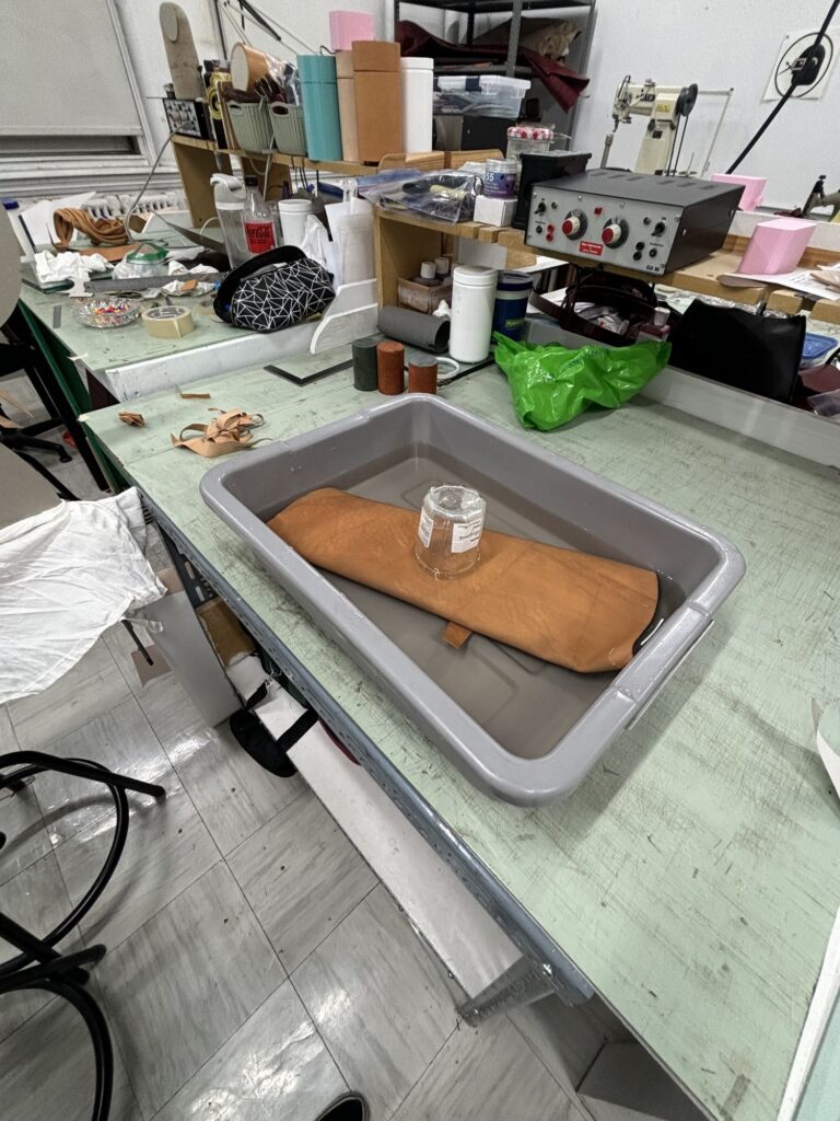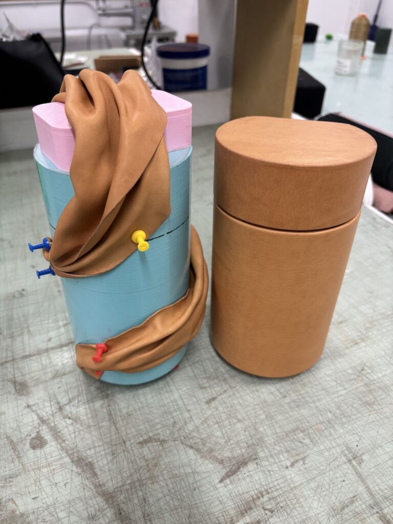 La résidence s’est déroulée en Toscane (Italie) en mai 2024. Le programme incluait trois jours de visites de tanneries certifiées, de manufactures et d’ateliers artisanaux. Puis, pendant deux jours, les binômes ont expérimenté la matière auprès de maîtres maroquiniers italiens.